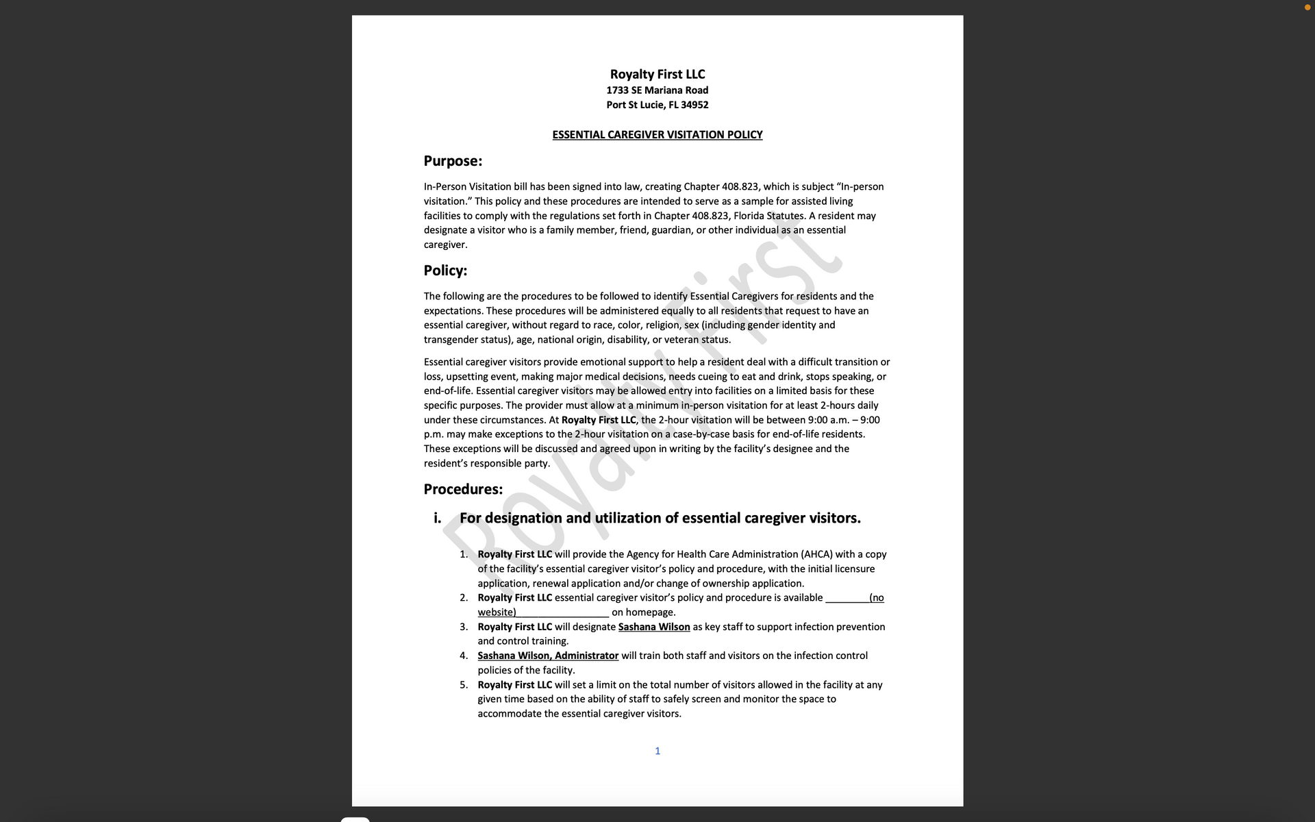 At Royalty First Assisted Living Home we are dedicated to providing you compassionate assisted living in secure and inviting residential settings. Your independence and sense of self is enhanced with our supporting environment. Live worry free and secure knowing we're always here for you. Our professionally trained staff are ready to help you when needed 24hrs a day.